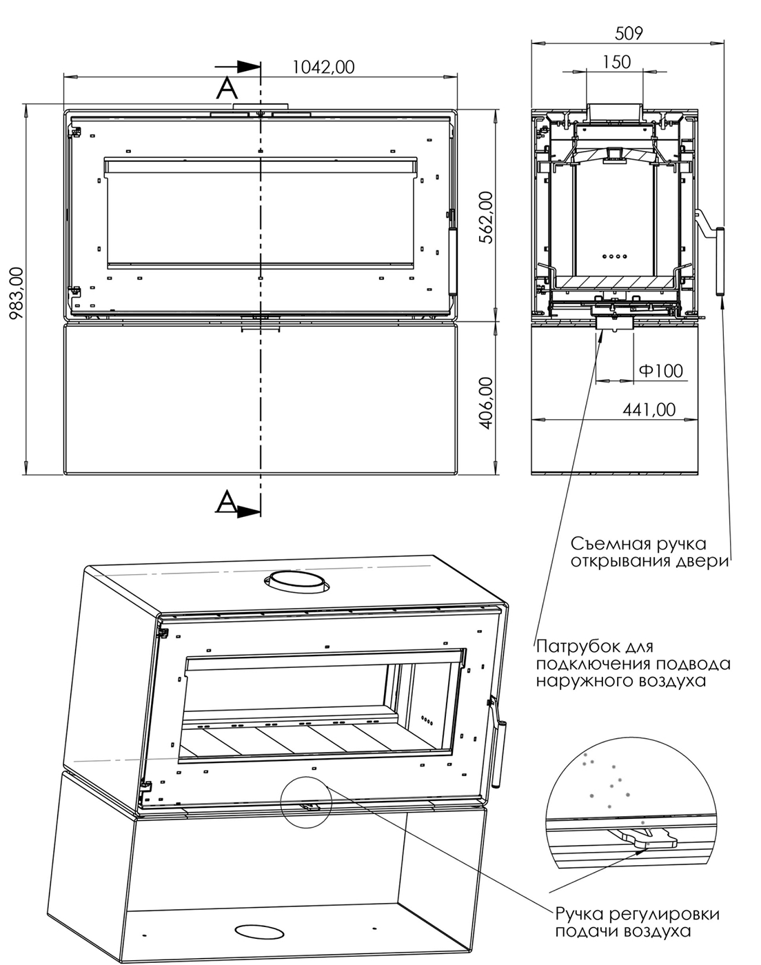 Печь-камин Монблан оснащена всеми современными характеристиками: система воздушной очистки стекла, система вторичного дожига газов, система подачи воздуха из «вне». Корпус топки печи произведен из стали 4 мм, а кожух печи из стали 6 мм.