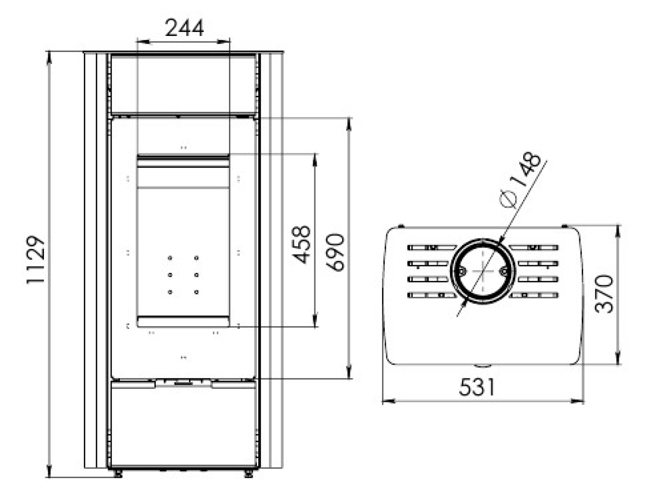 Печь оснащена всеми современными характеристиками: система воздушной очистки стекла, система вторичного дожига газов, система подачи воздуха из «вне», система "длительное горение", возможность подключения дымохода сверху либо сзади.