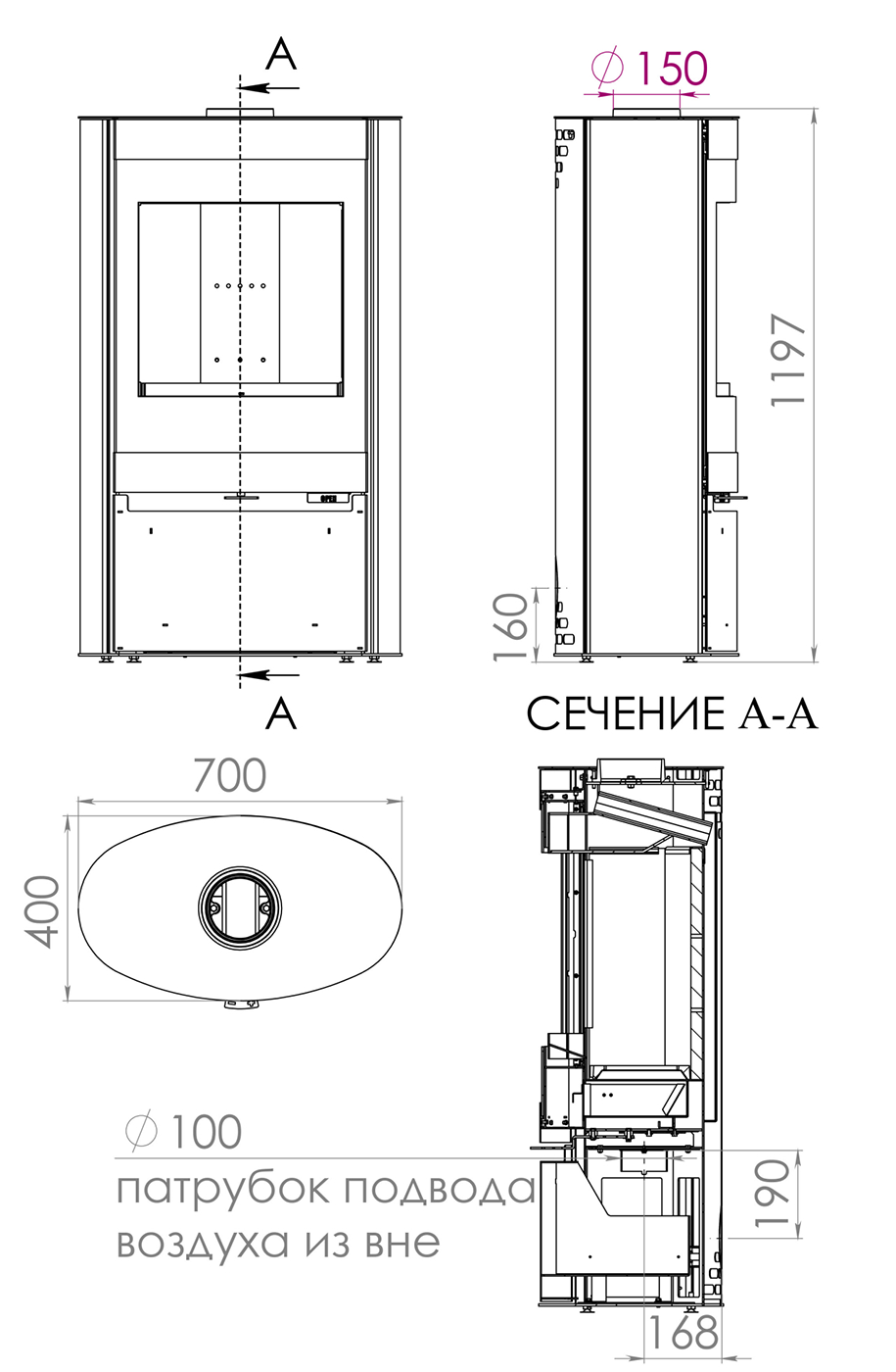 | Размеры (В х Ш х Д) | 1197 мм x 700 мм x 400 мм |