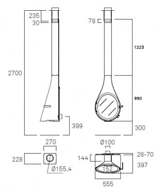 Камин может монтироваться в центральной части помещения или подвешиваться у одной из стен.