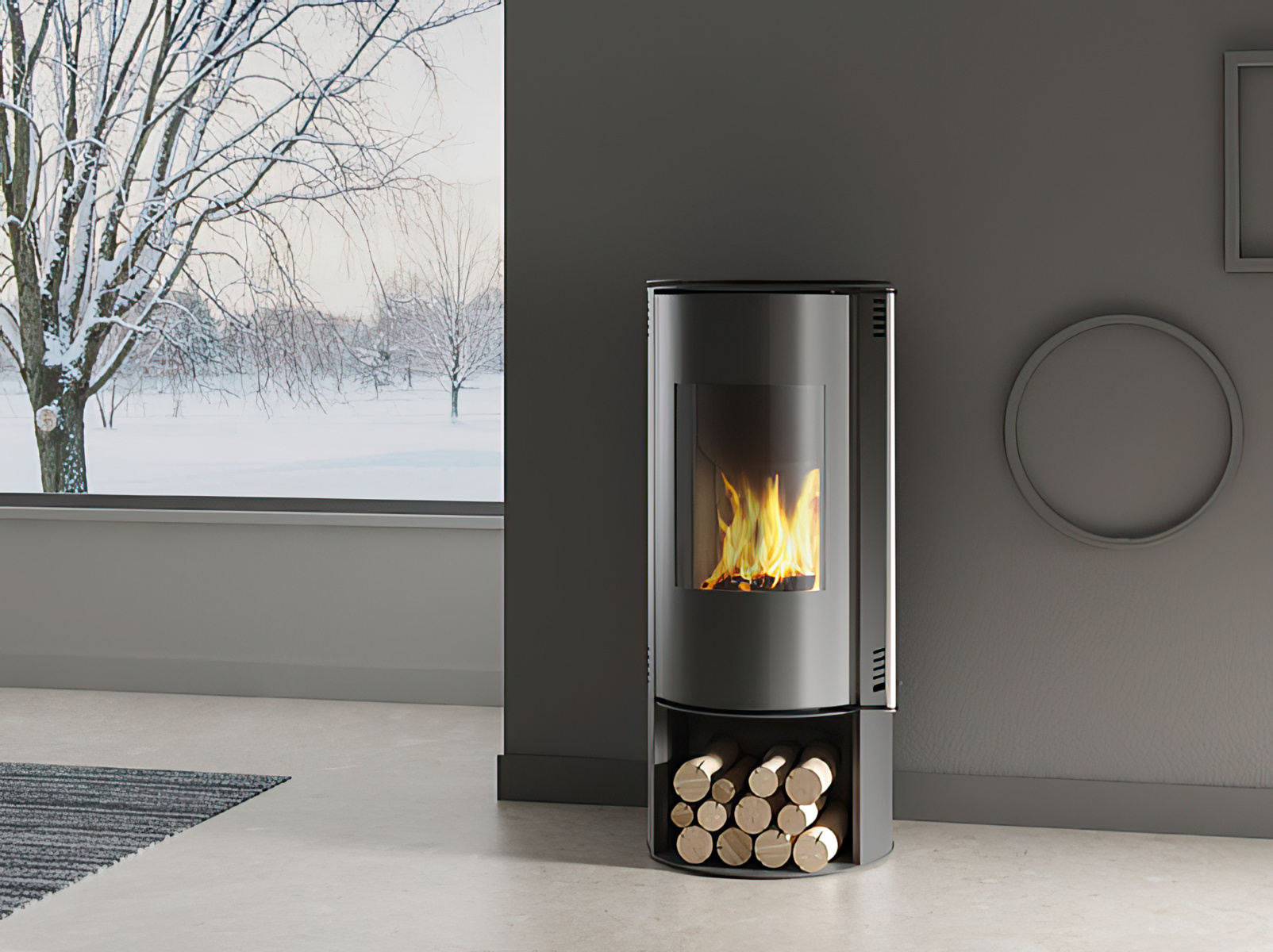 Solzaima Amber PV - дровяная печь цилиндрической формы. Данная модель имеет полностью стеклянную дверцу.