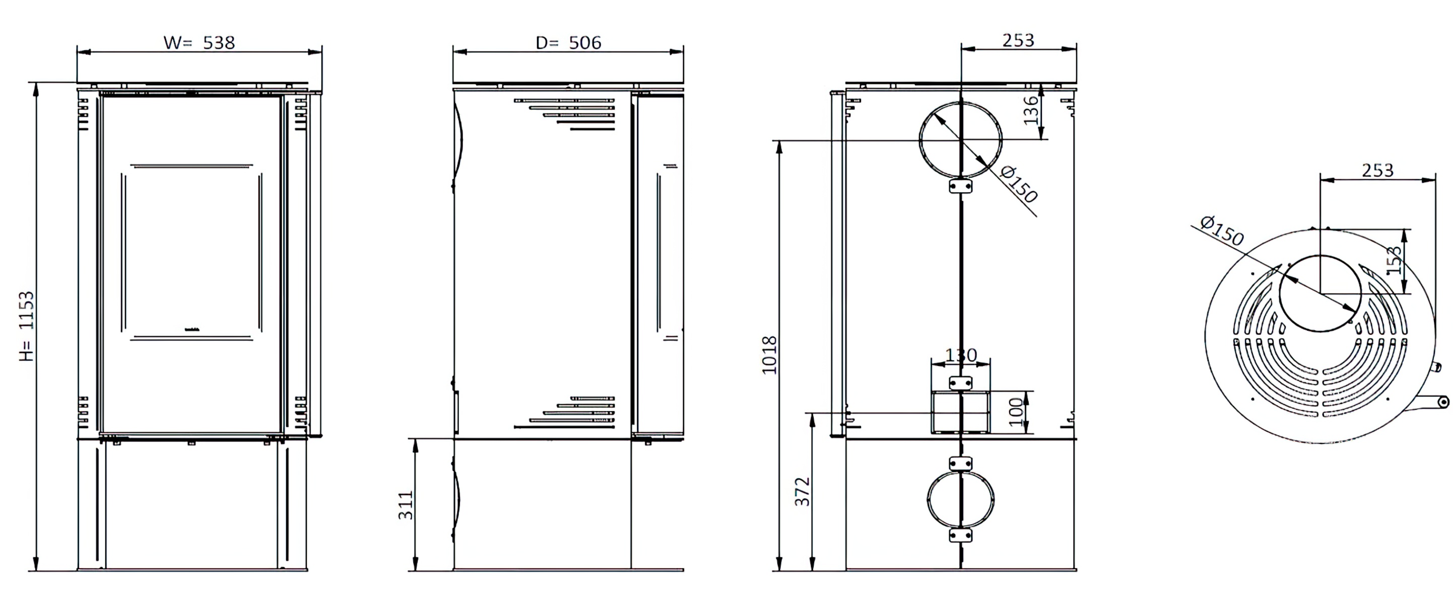 Камин изготовлен из жаростойкой стали толщиной 5 мм в соответствии с европейскими стандартами качества, а в качестве облицовки используется высококачественный листовой металл, отличающийся хорошей теплопроводностью и минималистической простотой.