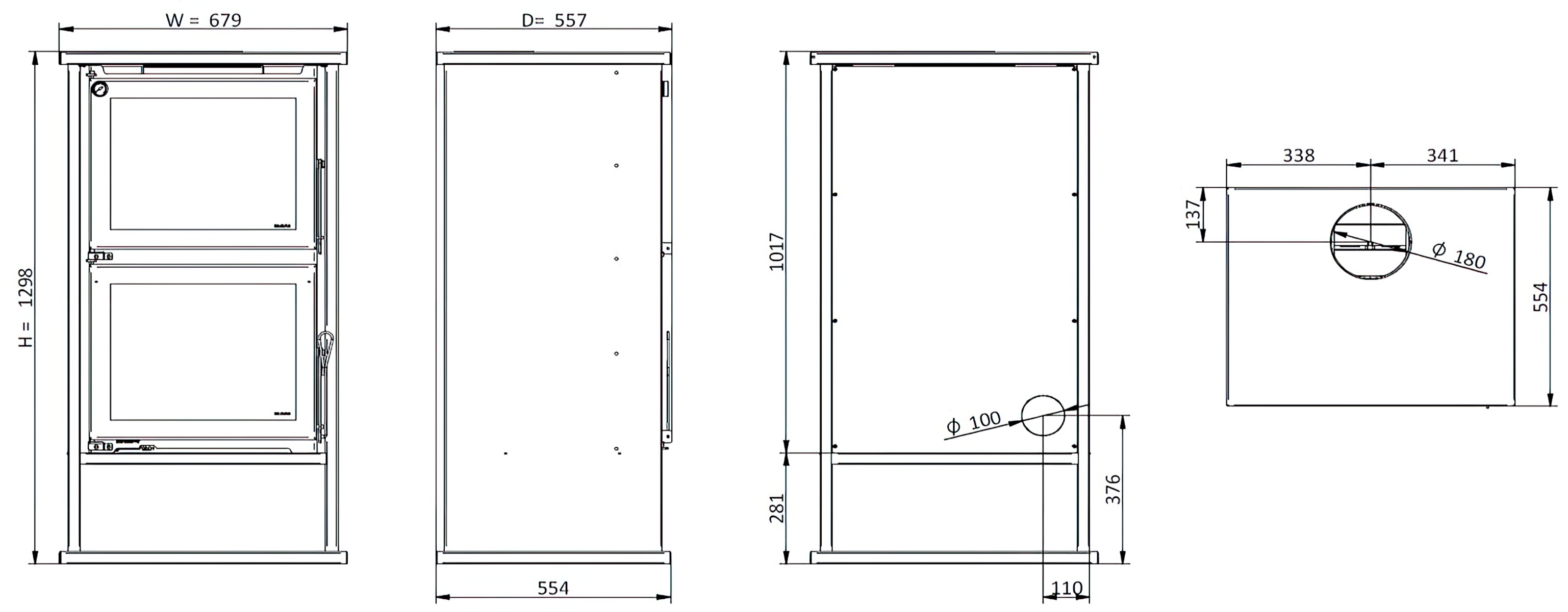 Размеры В×Ш×Г: 1298×679×557 мм.