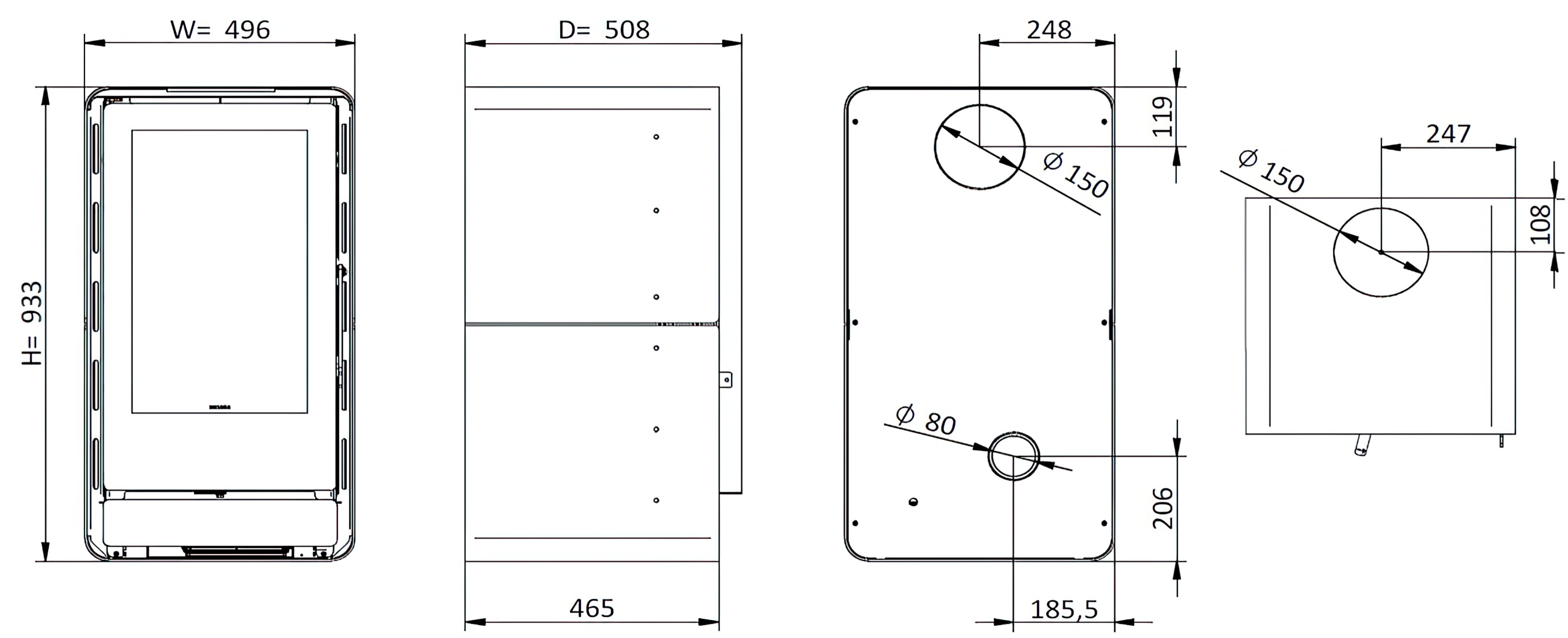 Диаметр дымохода: 150 мм.