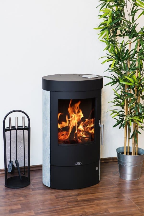 Благодаря овальной форме печь может компактно стоять как в углу комнаты, так и на прямой стене.