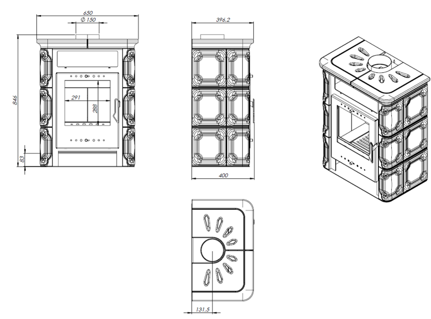Кафельная печь Nordflam Arta White изготовлена из стали, снаружи печь отделана кафелем. Топочная камера футирована вермикулитом. Ее элегантный дизайн и современная отделка делают печь не только функциональным, но и стильным элементом интерьера. Печь оборудована специальной дверцей с термостойким стеклом, что позволяет безопасно наблюдать за горением дров.