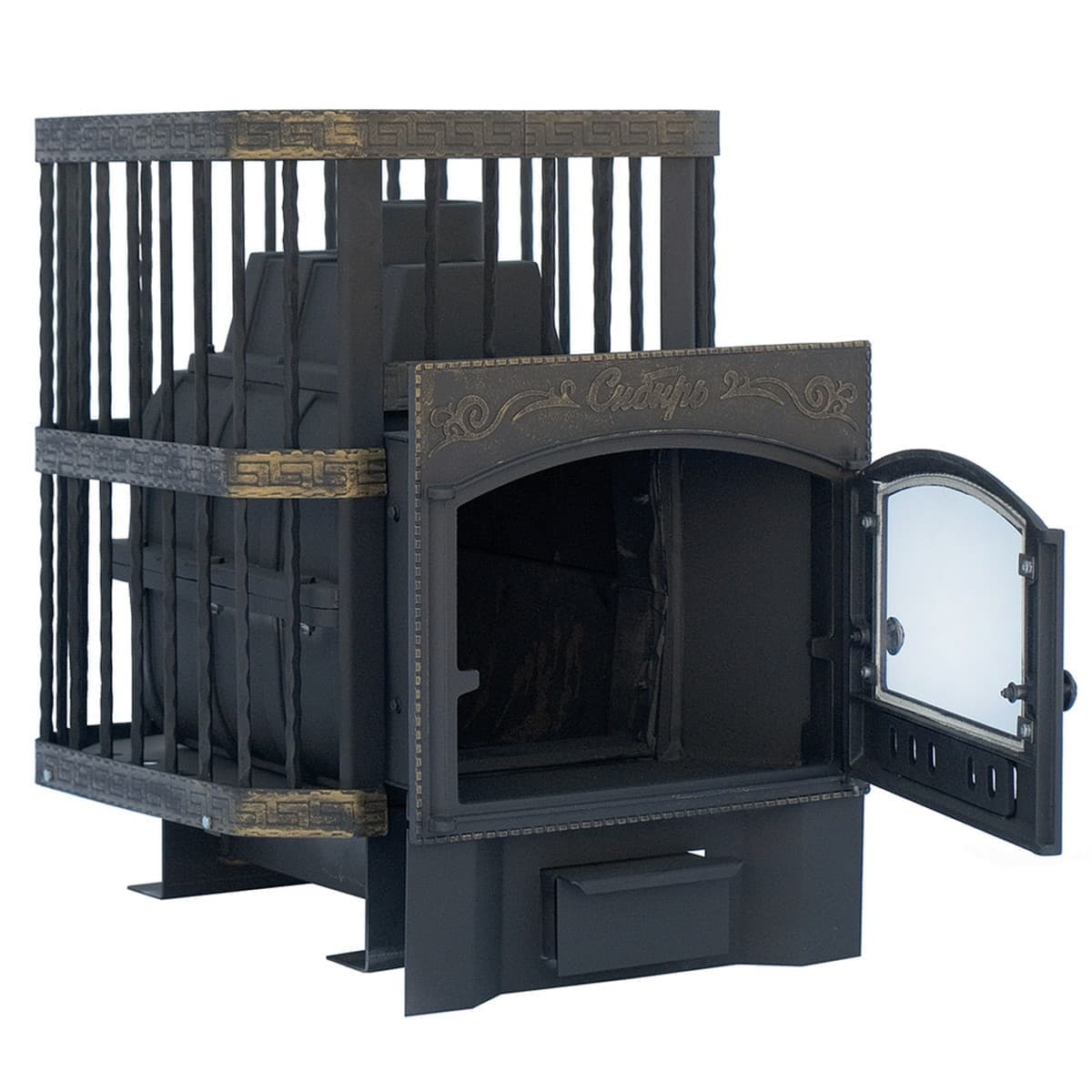 Банные печи "Сибирь-24" с каминной топочной дверцей является новым видом банных печей, производимым заводом "НМК". Фирменная топочная дверка с надписью "Сибирь", отлитая из чугуна делает данный вид печей долговечным и надежным. Удобство в использовании такого вида топочной дверцы заключается в том, что ее можно переставить как для левого так и для правого открытия в зависимости от пожеланий ценителей бани.