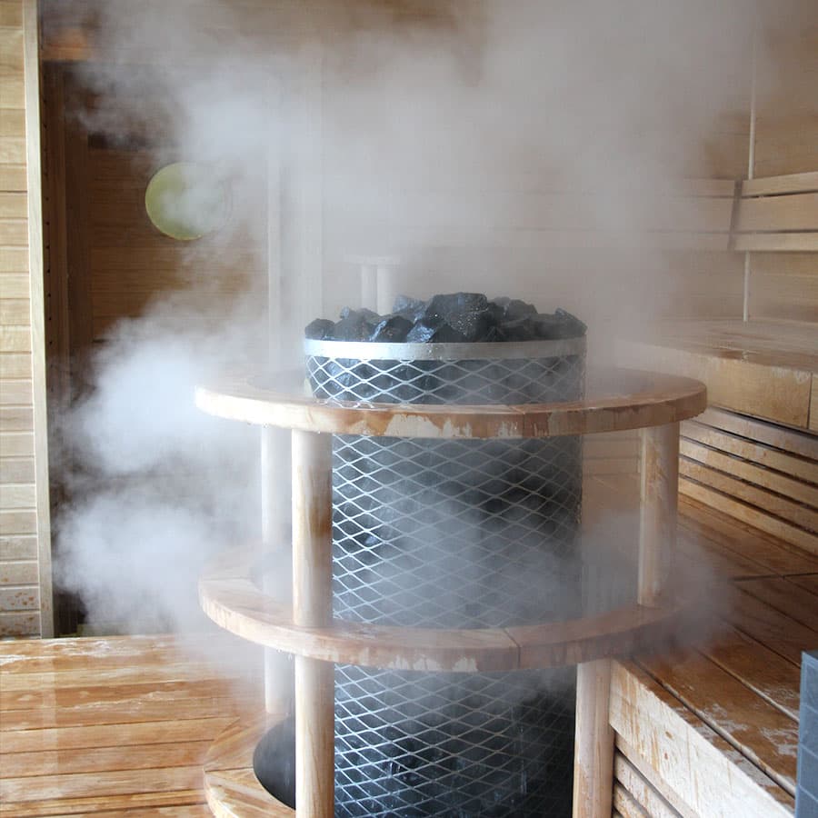 Вы ощущаете мягкий жар от камней, а не от раскаленного металла. Форма колонны экономит место в парилке.