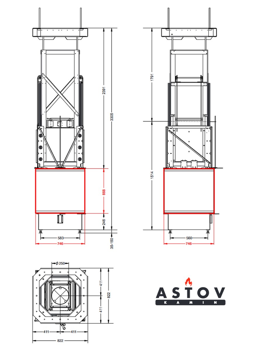 | Диаметр дымохода | 250 мм |