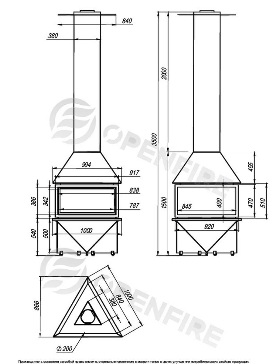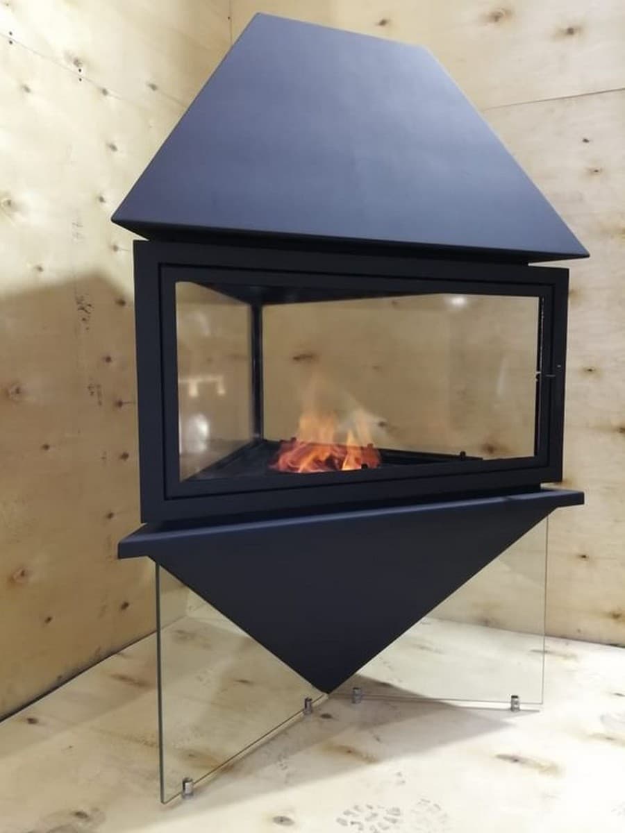 Центральный подвесной камин Delta OpenFire - современный камин оригинальной треугольной формы в стиле хай-тек, установленный на подставку из трёх стёкол.Основные черты данной модели - это броский, но при этом лаконичный, легкий дизайн.
