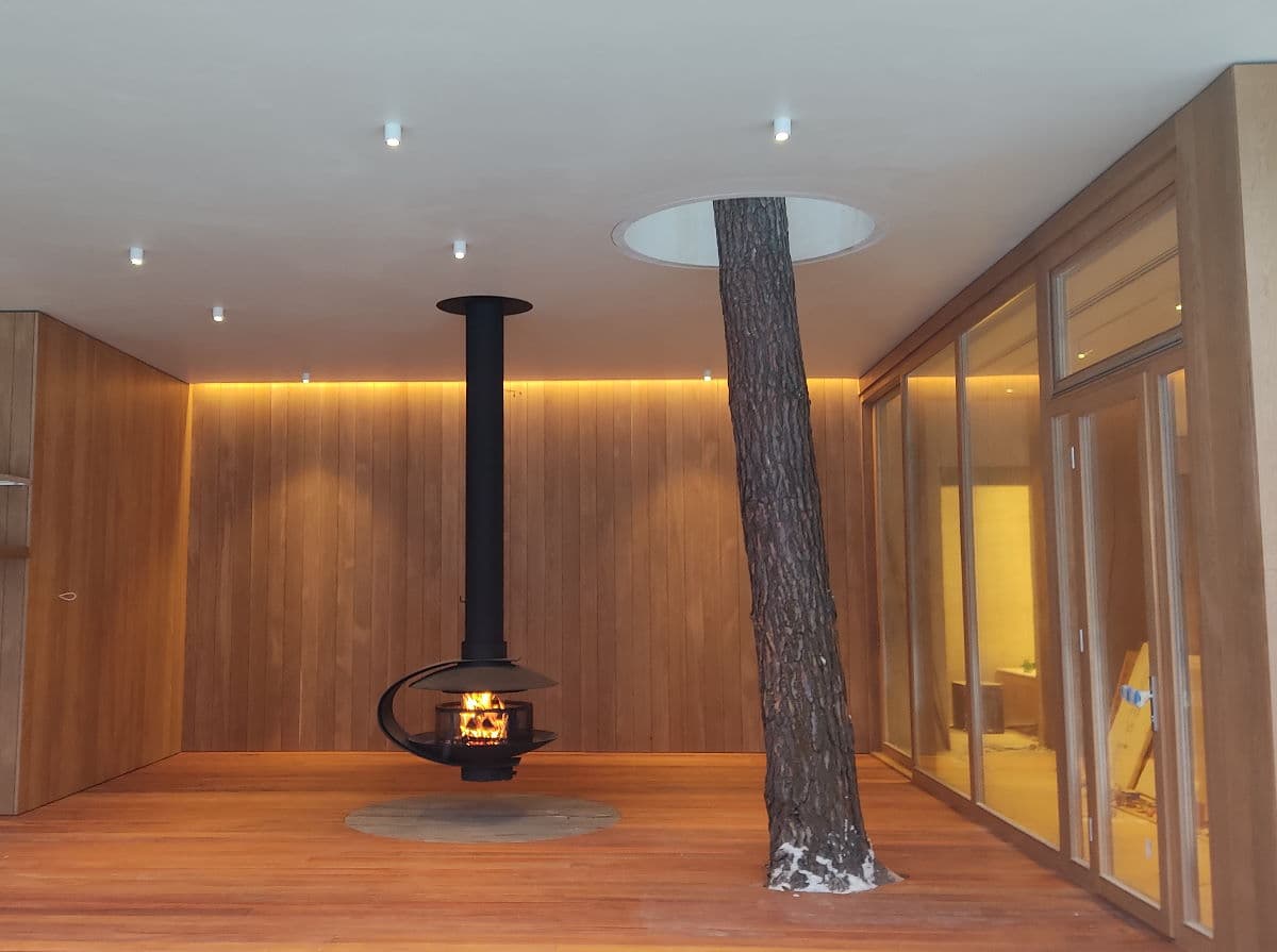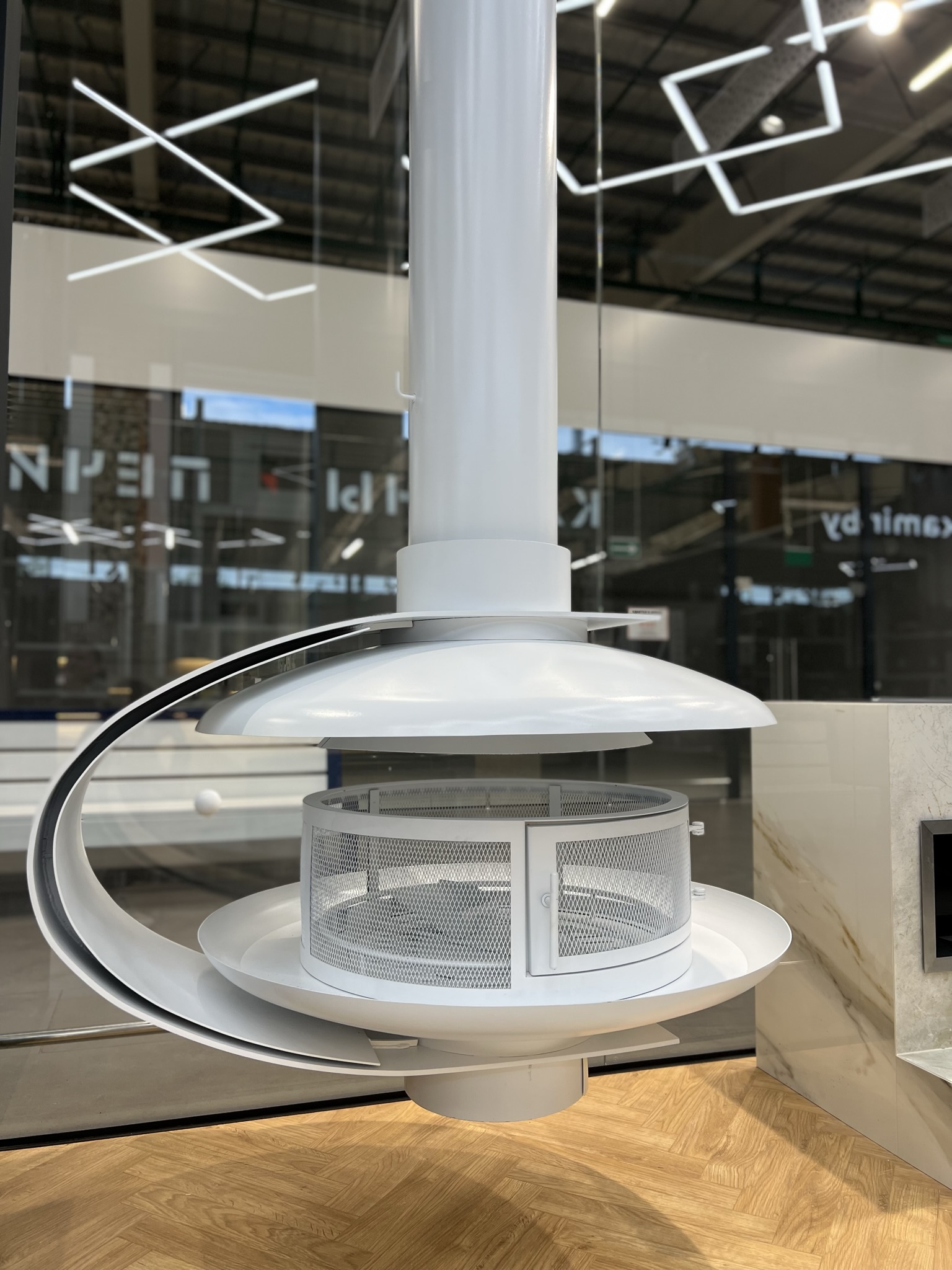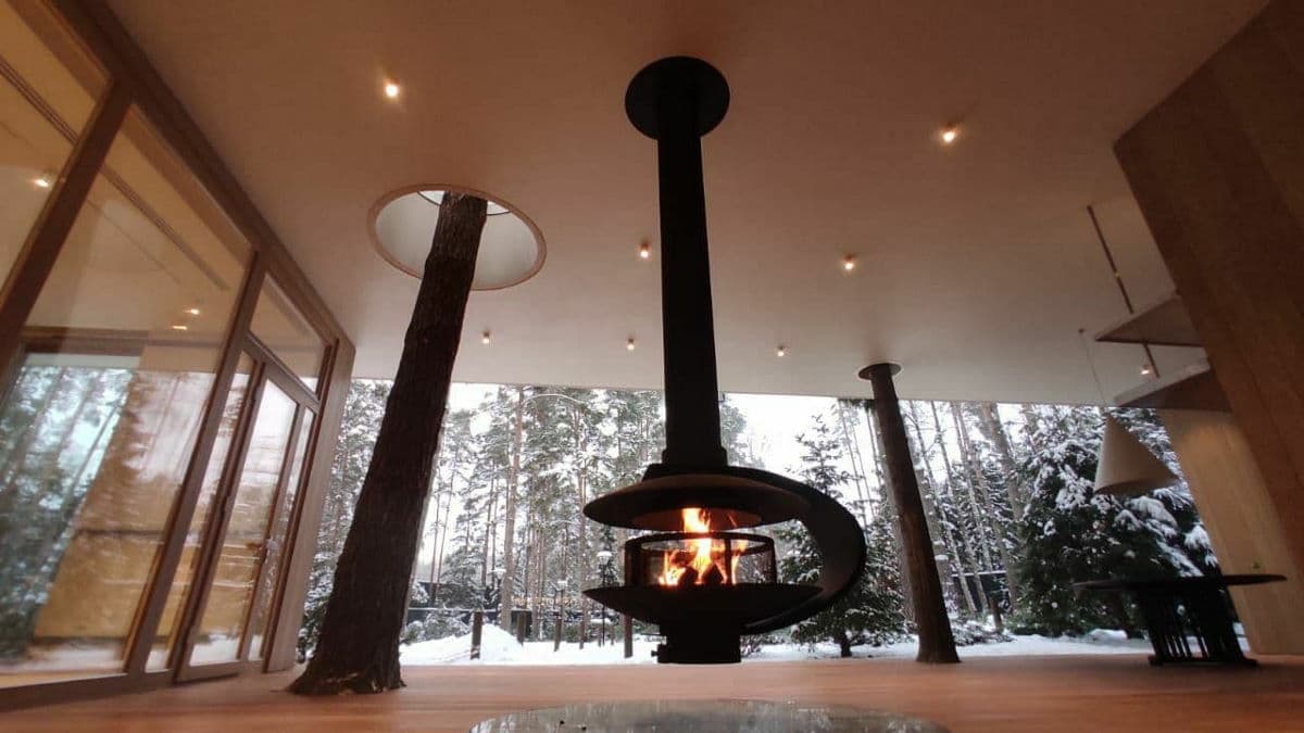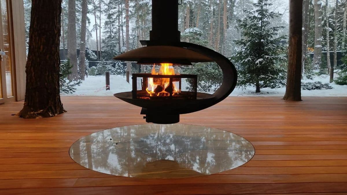 Подвесной камин с трехсторонним обзором пламени -отличный вариант для максимально выгодного обзора пламени и при этом экономии места в помещении. Если у вас мало места для установки островной центральной модели, то вариант подвесного расположения с трехсторонней топкой станет отличным вариантом. Универсальные внешние данные камина, способные поместиться как в современную стилистику помещения, так и в интерьеры с классическим обустройством.