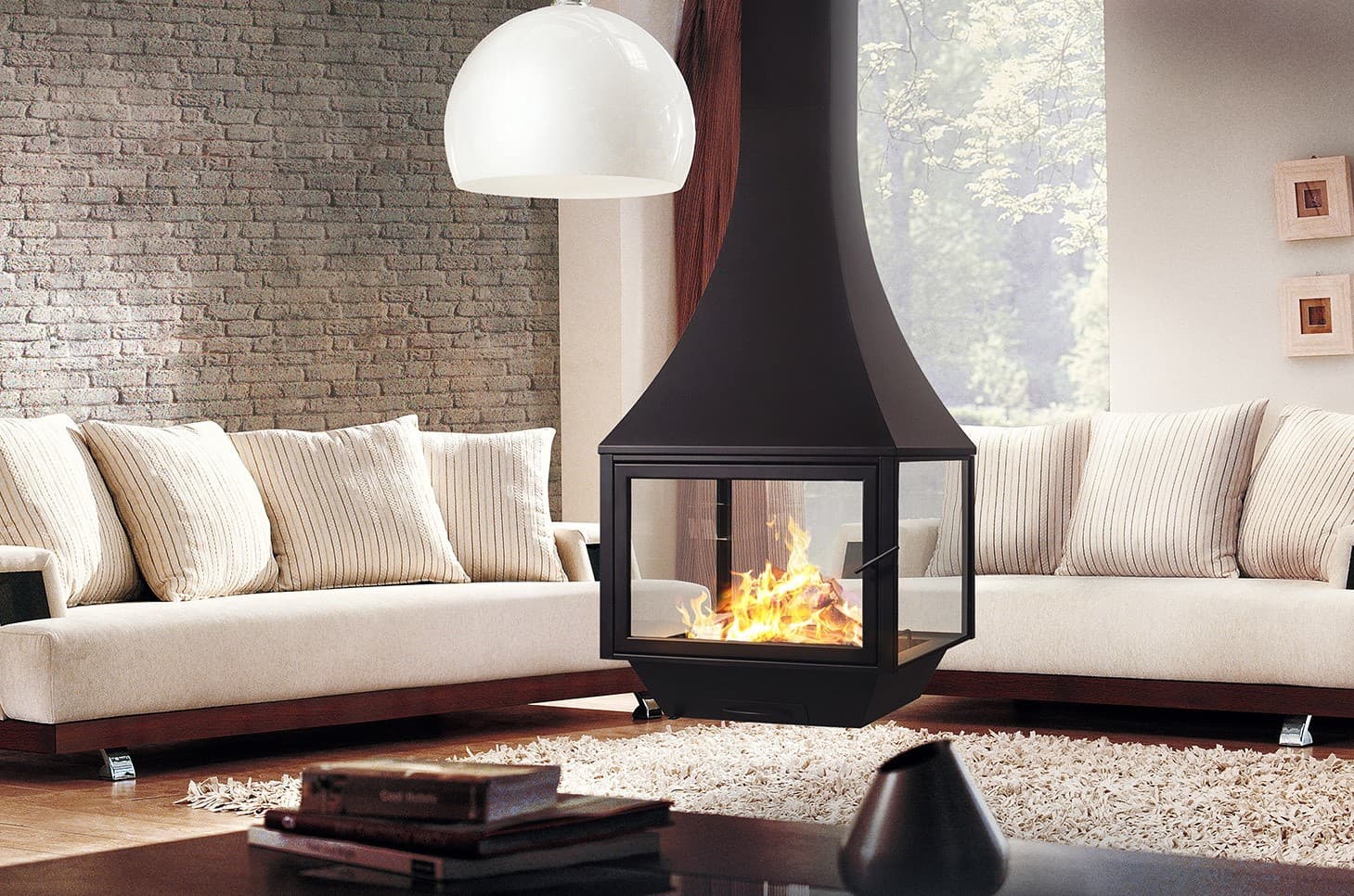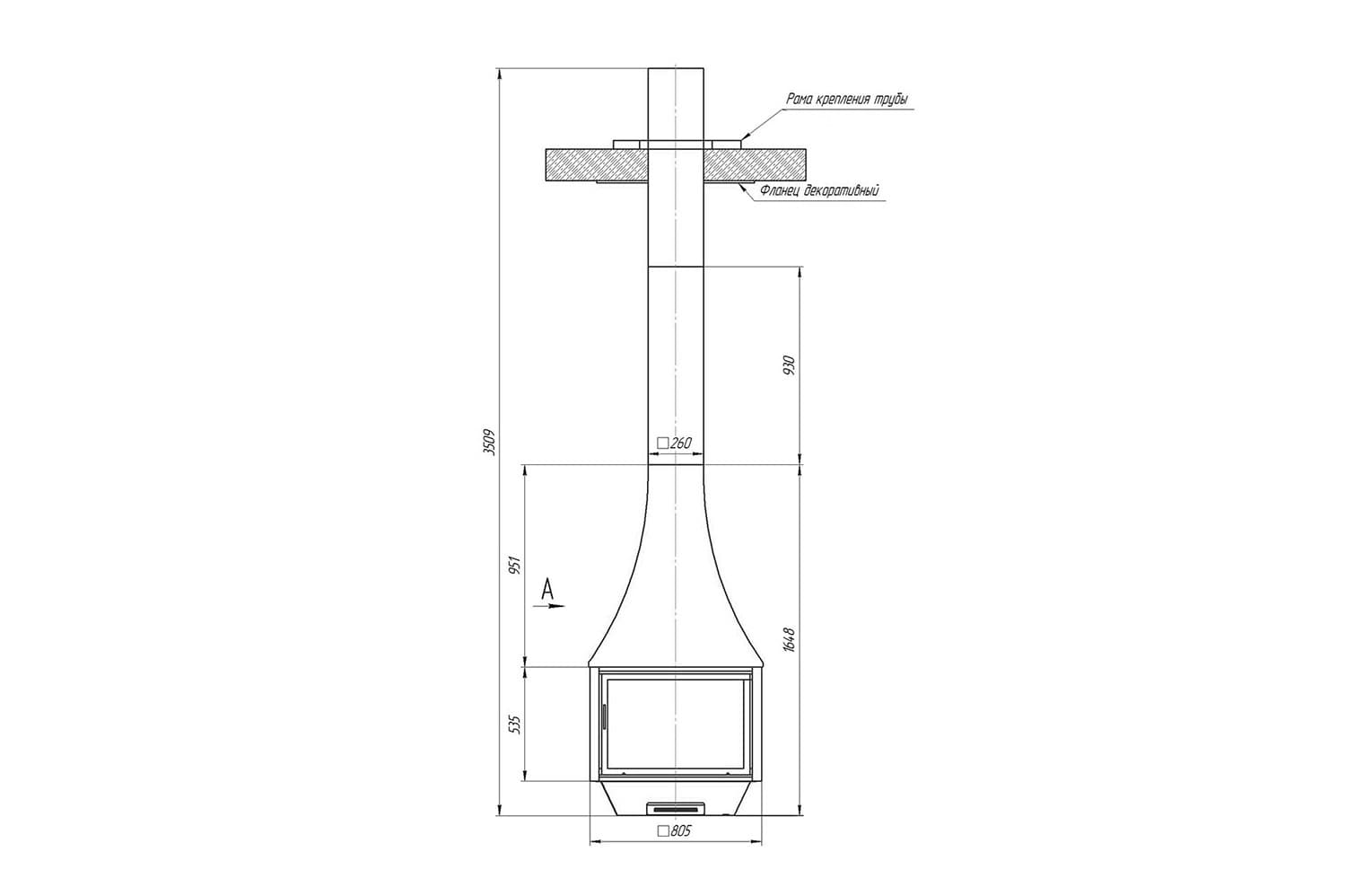 Наличие стекол с четырех сторон топочной камеры придает легкость этой модели и позволяет наблюдать за игрой пламени с любой точки помещения.