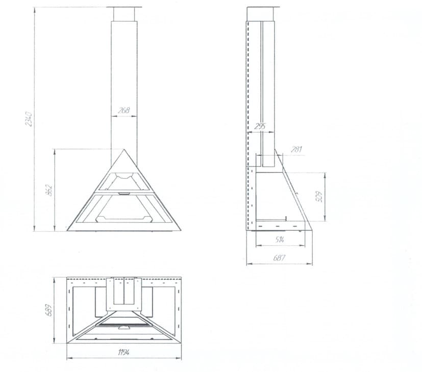 | Информация | Подвесной камин с трехсторонним остеклением |