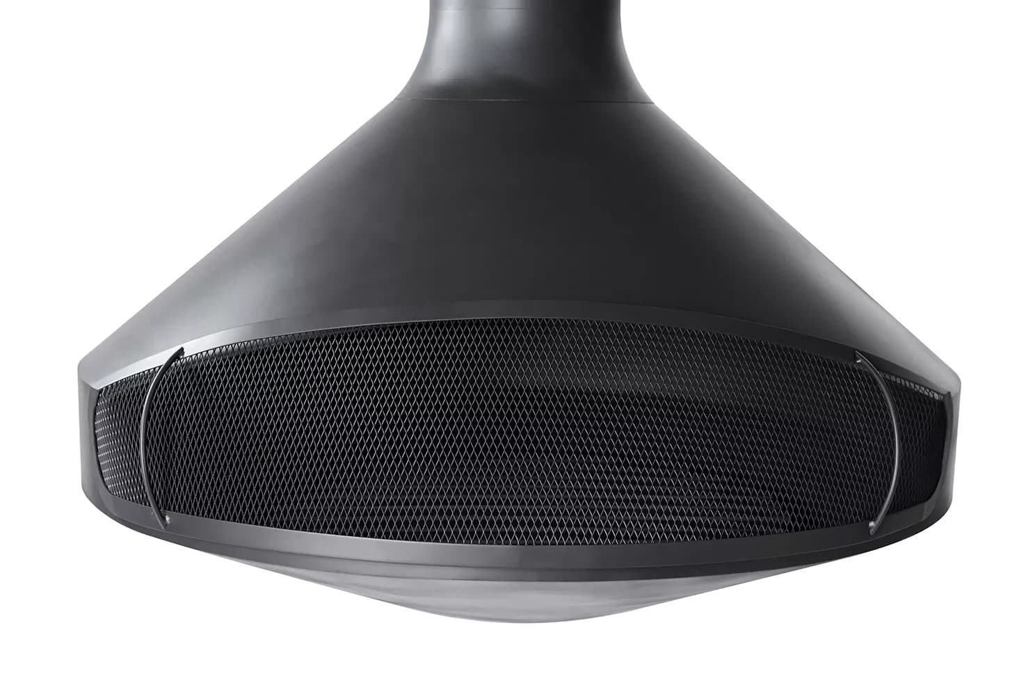 Эта модель подвешивается к потолку. В комплект входит дымоход из нержавейки длиной 3м с шиберной заслонкой.