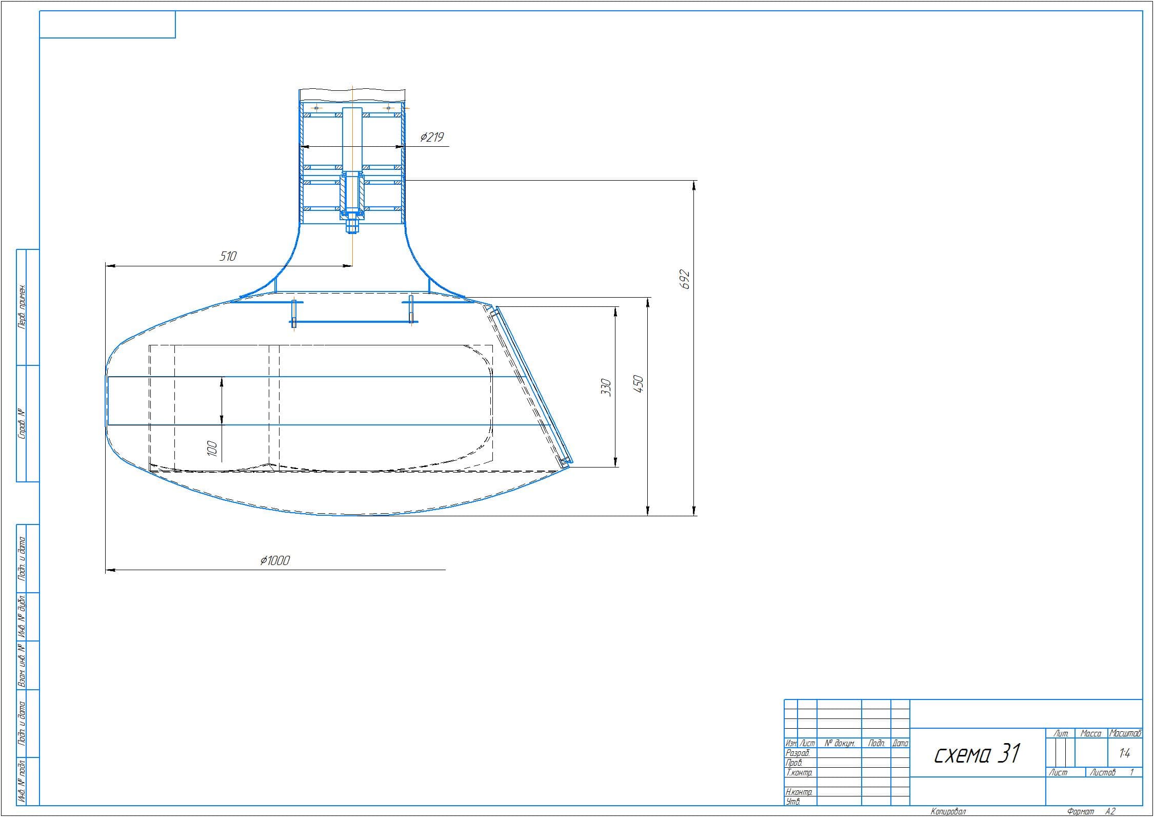 Диаметр топки 1000 мм.