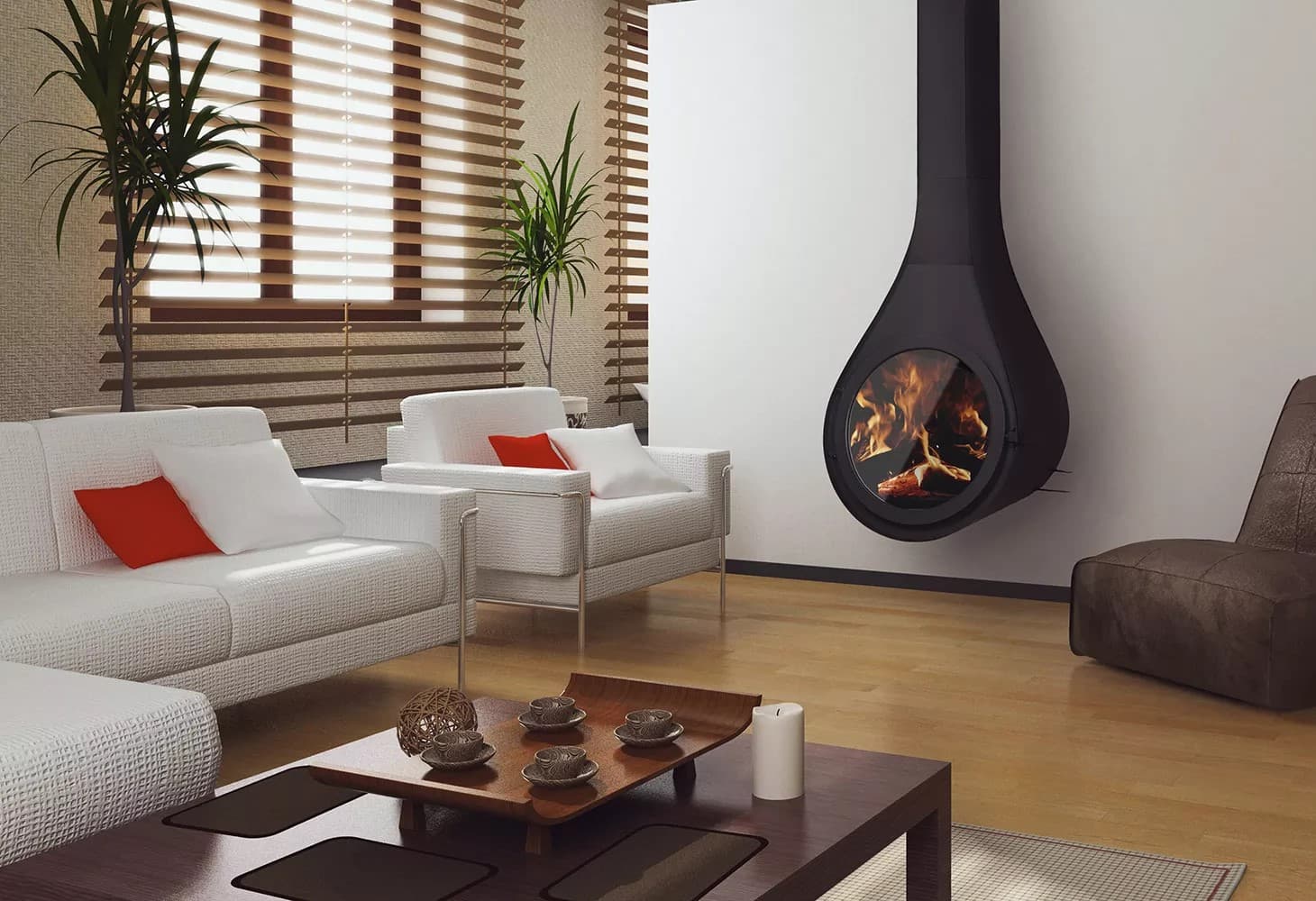 - Информация:Подвесной пристенный камин с закрытой топкой