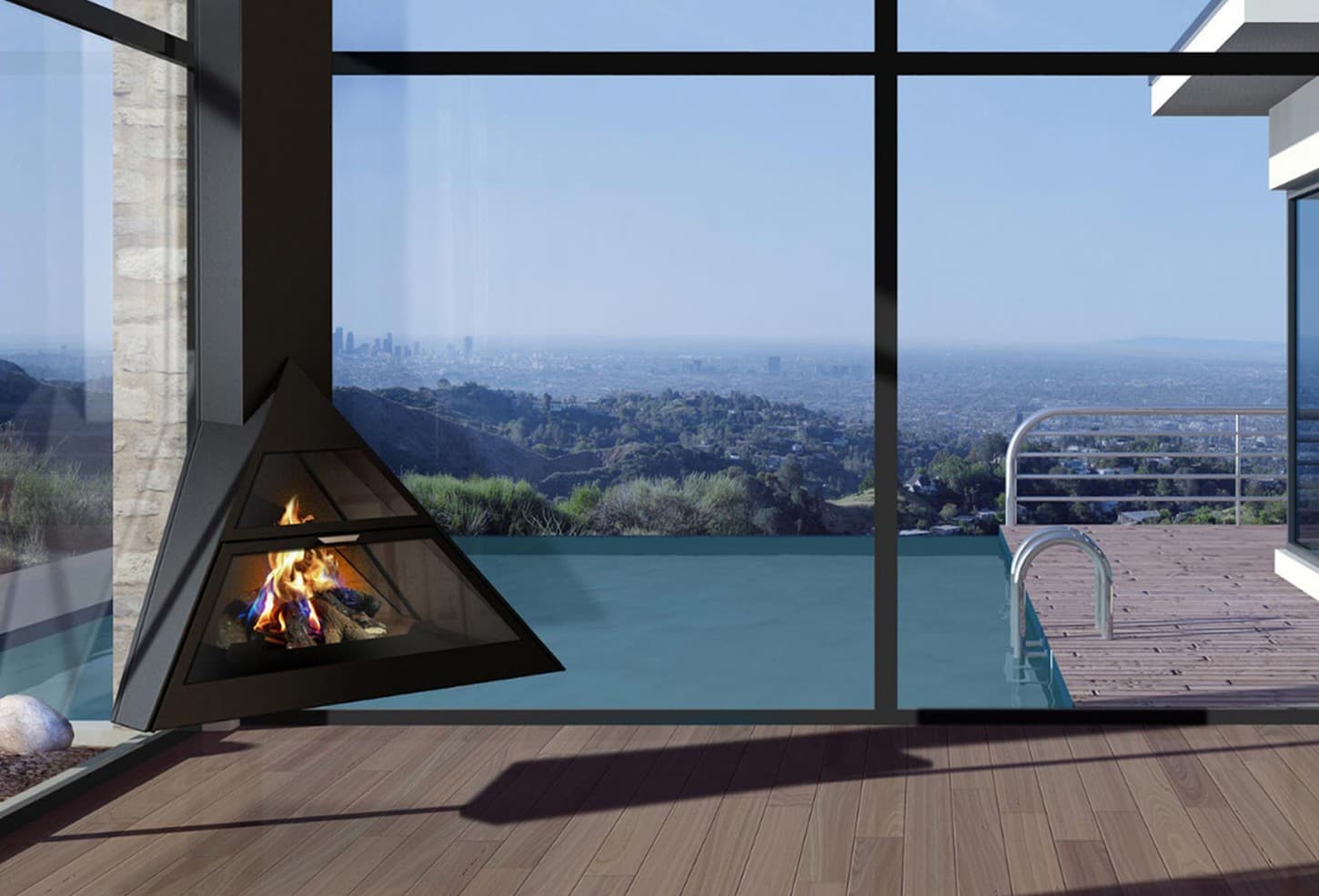 Подвесной камин LOFT -15 - необычный угловой камин в современном стиле.