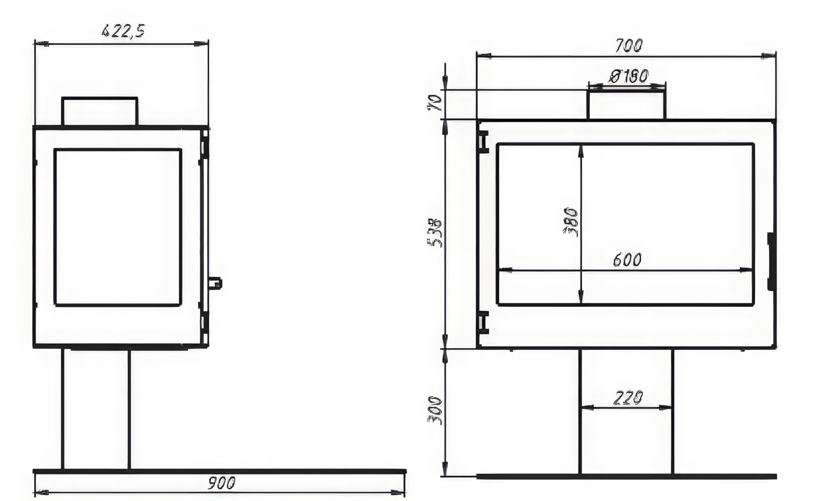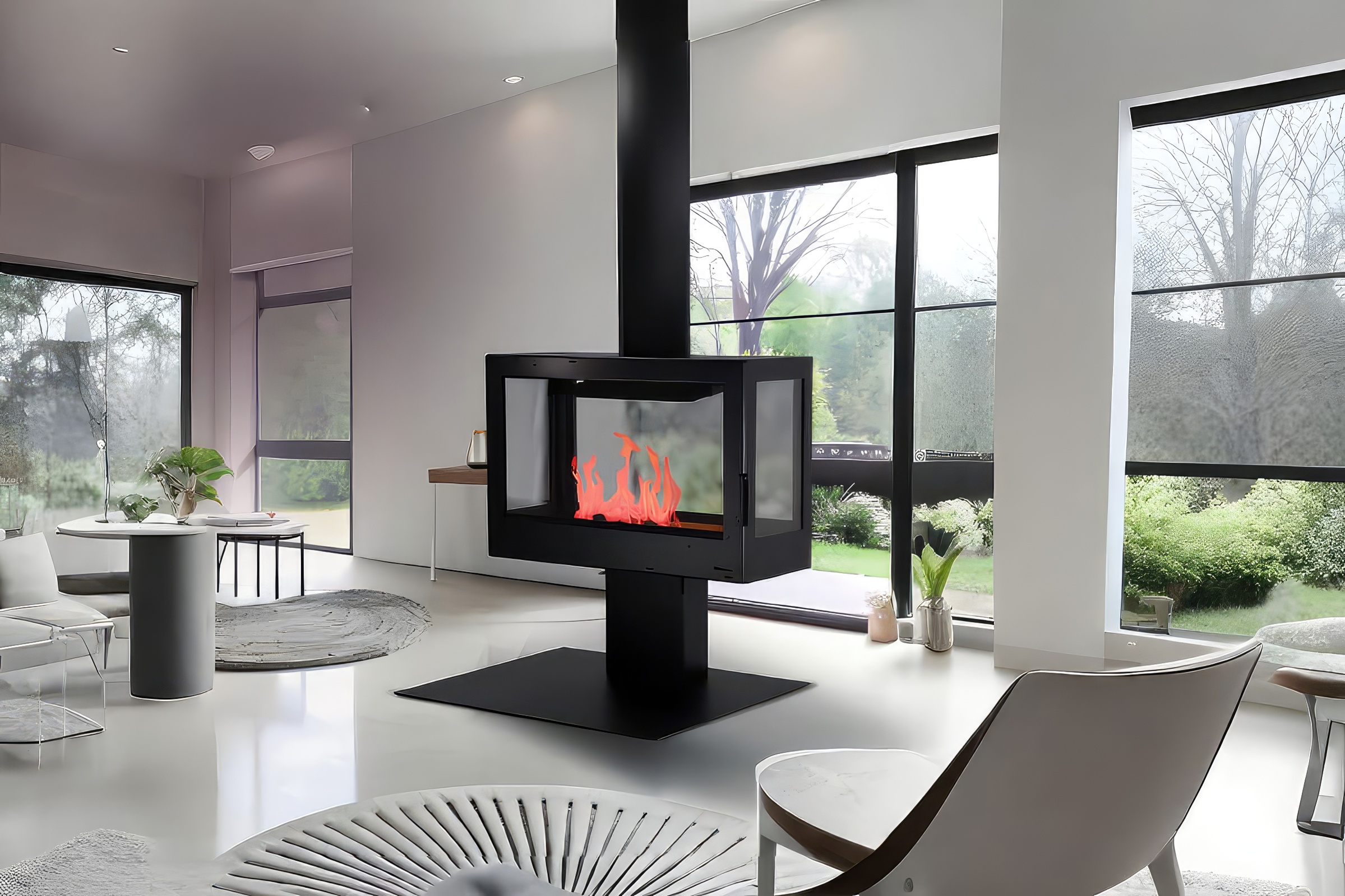 AVES 35 КВАДРО 4 — центральный подвесной камин с увеличенной топкой