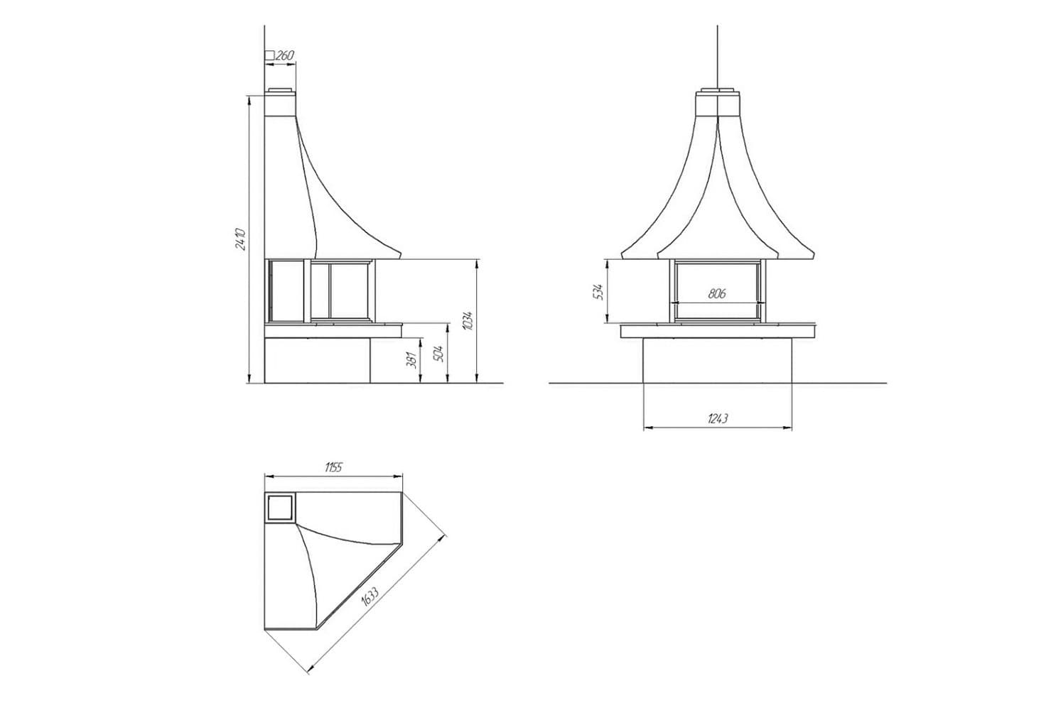 - Высота:241 см (высота камина до дымохода) 200 см (высота дымохода)