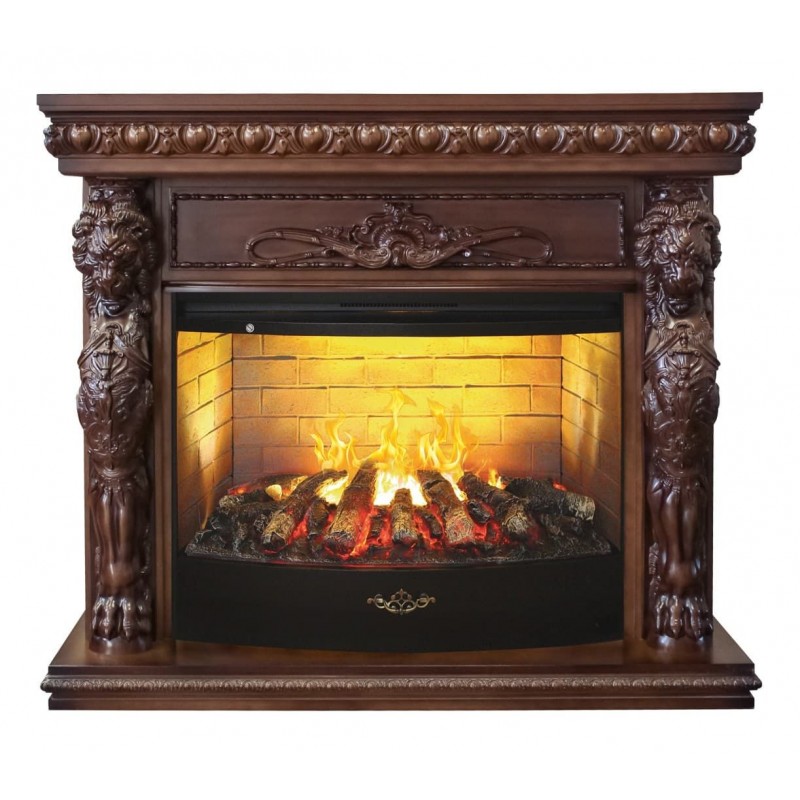 Роскошный и величественный камин в стиле барокко. Портал выполнен из шпонированного МДФ в благородном древнсном оттенке. Главные элементы декора — резные фигуры львов. Царственные животные с пышными гривами сидят по бокам очага и словно охраняют огонь. 3D-очаг последнего поколения создает реалистичную картину настоящего камина. "Живым" пламя кажется благодаря постоянному движению поднимающихся клубов пара и подсветке галогеновых ламп. Всеми функциями можно управлять с панели на корпусе и пульта ДУ.