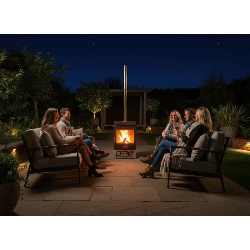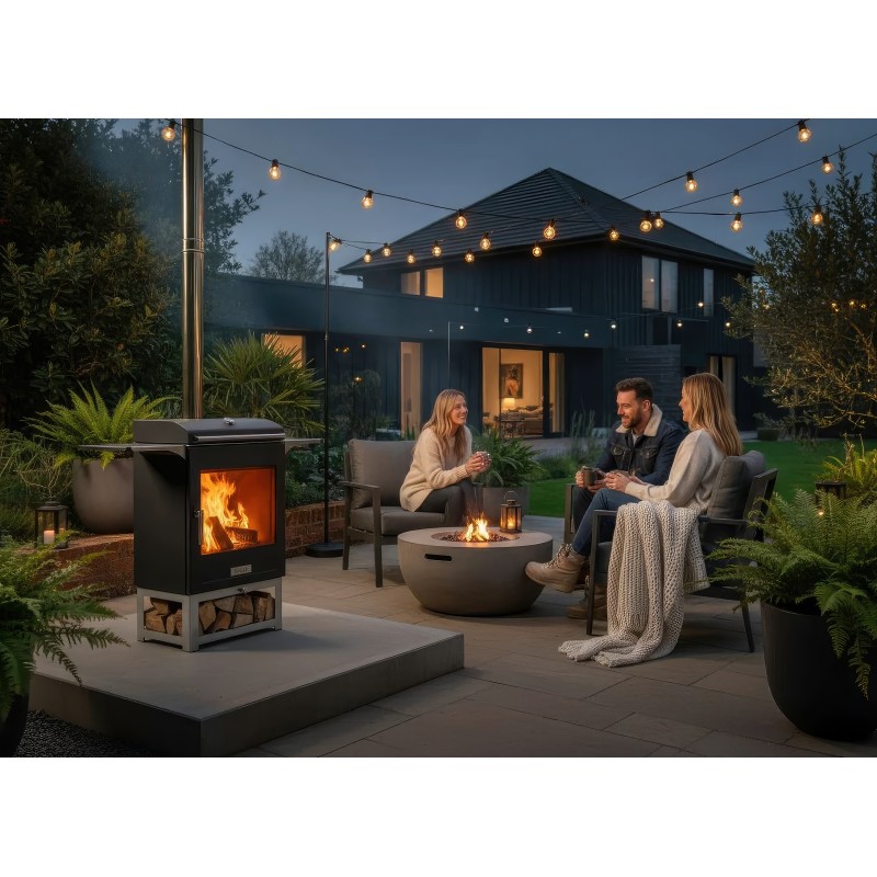 Ember Heat 600 станет архитектурным акцентом вашего ландшафтного дизайна. Широкое основание обеспечивает устойчивость на любой поверхности, а вместительная открытая ниша в нижней части позволяет хранить большой запас дров, защищая их от сырости почвы. Продуманная конструкция дымохода эффективно отводит дым выше уровня глаз сидящих рядом людей.