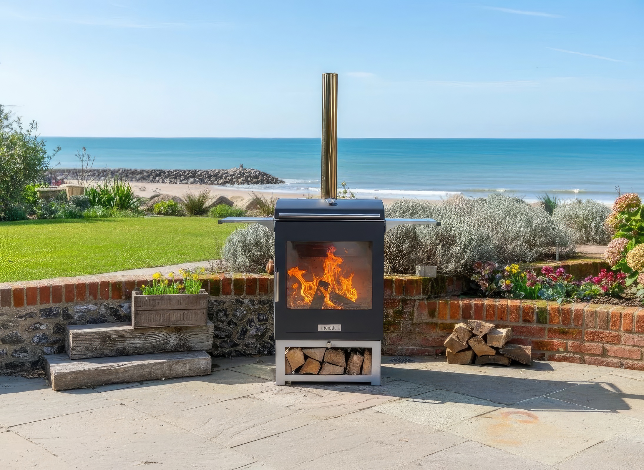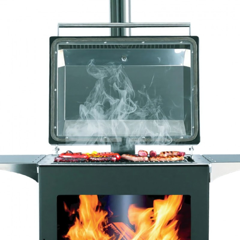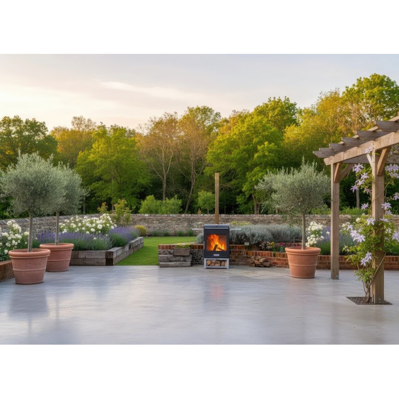 Это многофункциональная уличная печь, которая сочетает в себе камин для сада и полноценный гриль. Идеальное решение для террасы, двора или зоны барбекю, позволяющее не только наслаждаться живым огнем, но и готовить блюда на открытом огне.