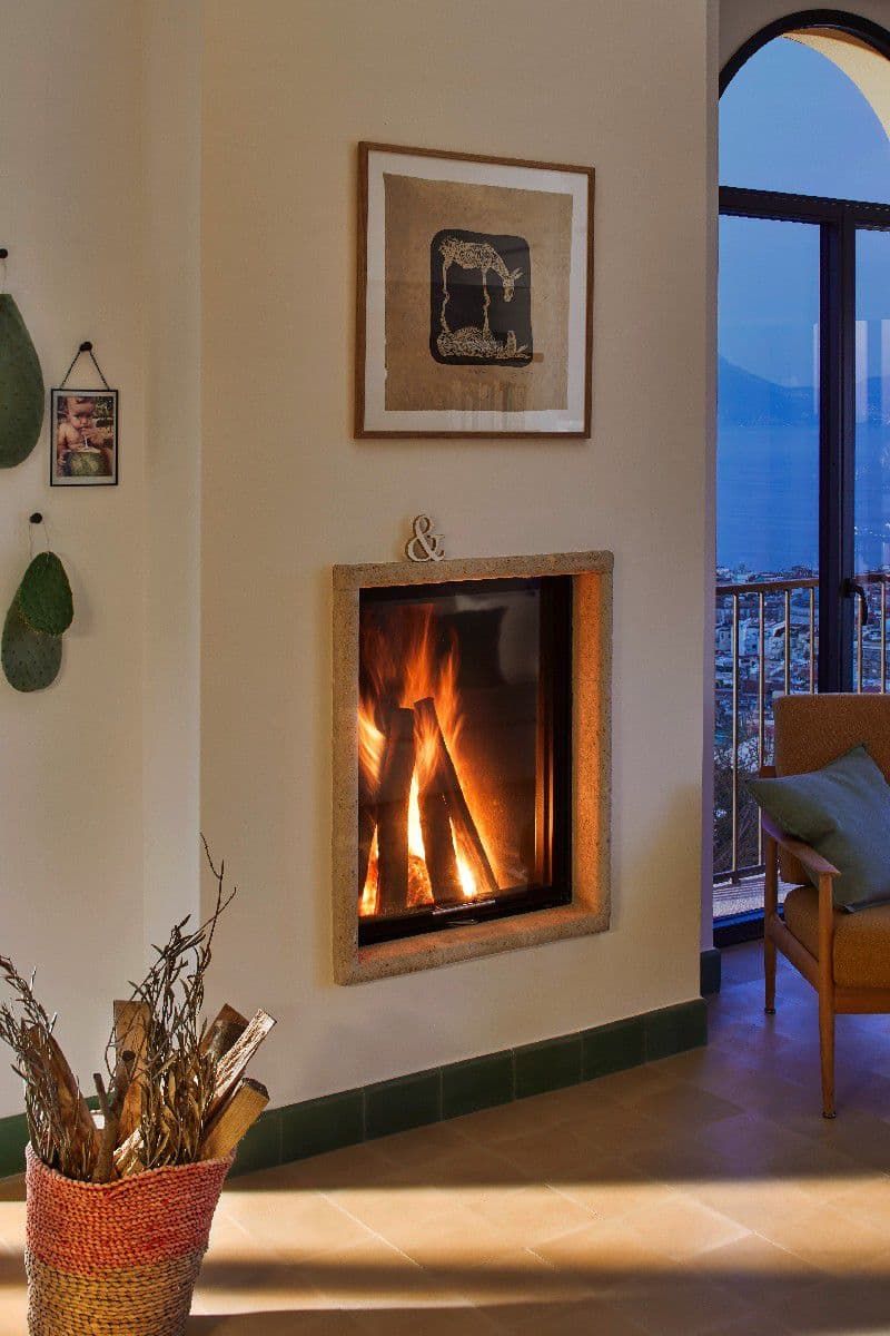 - Современный дизайн - максимально видная топочная часть. Конструкция дверцы выполнена таким образом, чтобы не мешать восприятию живого огня