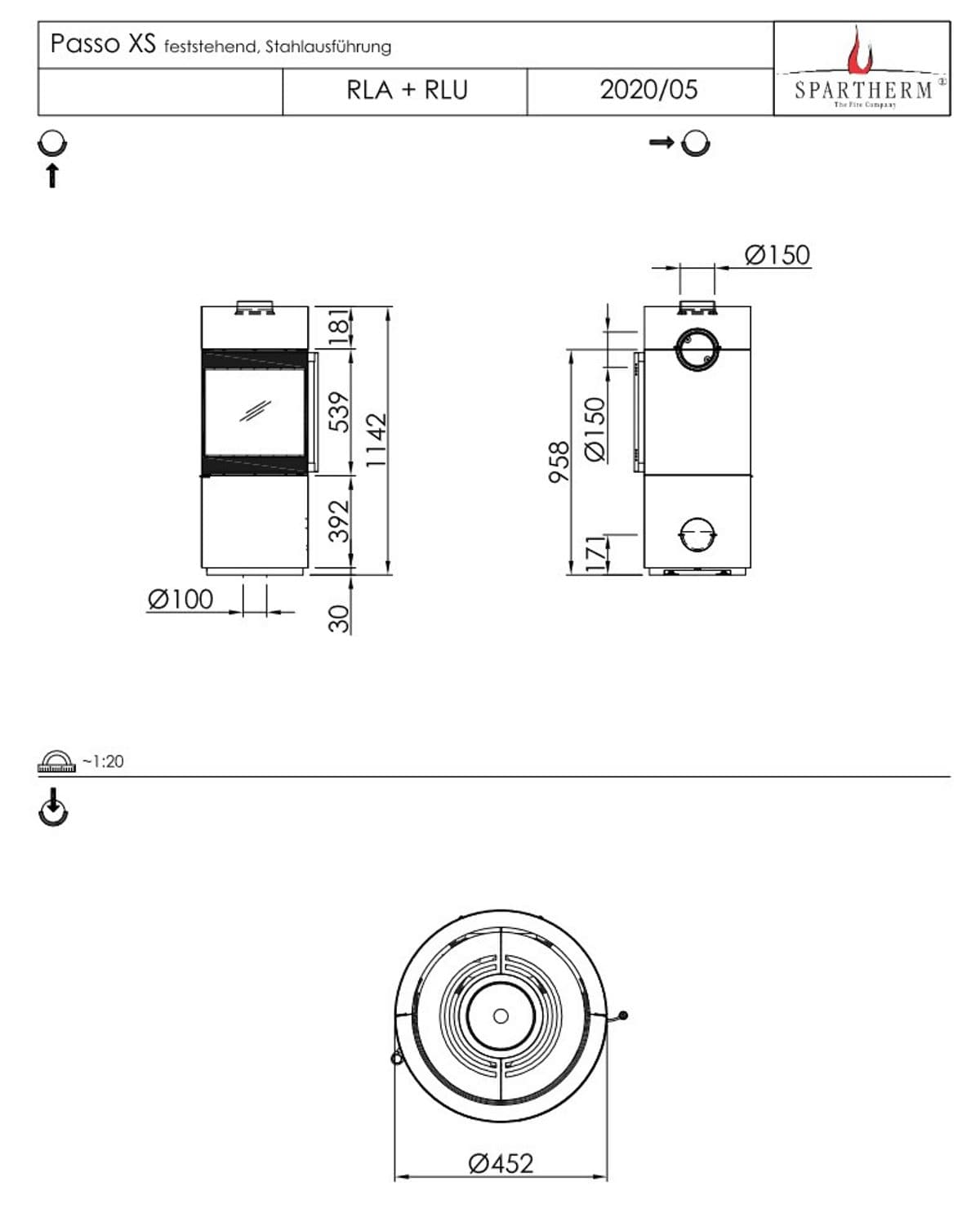 Spartherm Passo XS - это современная дровяная печь цилиндрической формы.