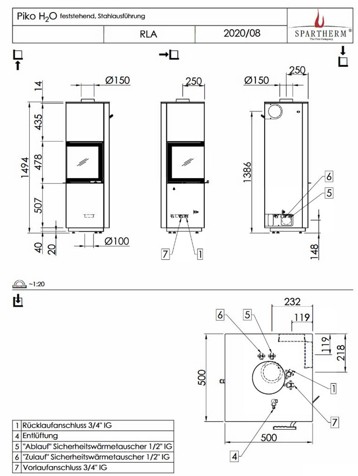 Spartherm Piko H2O - это дровяная печь с водяным контуром. Высокая производительность теплообменника сочетается с высокой эффективностью сжигания дров. 63% тепловой энергии расходуется на нагрев воды в теплообменнике. Остальные 37% тепловой энергии расходуется на конвекционный нагрев помещения. При расходе дров 2,2 кг/ч можно нагреть помещение площадью 72 кв. м. до комфортной температуры 20°C. Вы можете так-же нагреть водяной накопитель объемом 300 л до температуры 40-50 градусов. Печь оснащена дополнительным контуром для защиты теплообменника от перегрева. Боковое стекло позволяет наблюдать за огнем с двух сторон. Дверца выполнена в современном стиле с тонировкой по периметру стекла. Модель оснащена патрубком для подключения подачи воздуха на горение с улицы. Забор воздуха на горение с улицы обеспечивает простой розжиг печи и её стабильную работу.