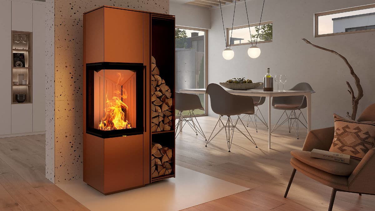 Печь-камин Spartherm Piko L с узким ящиком для дров в интерьере: