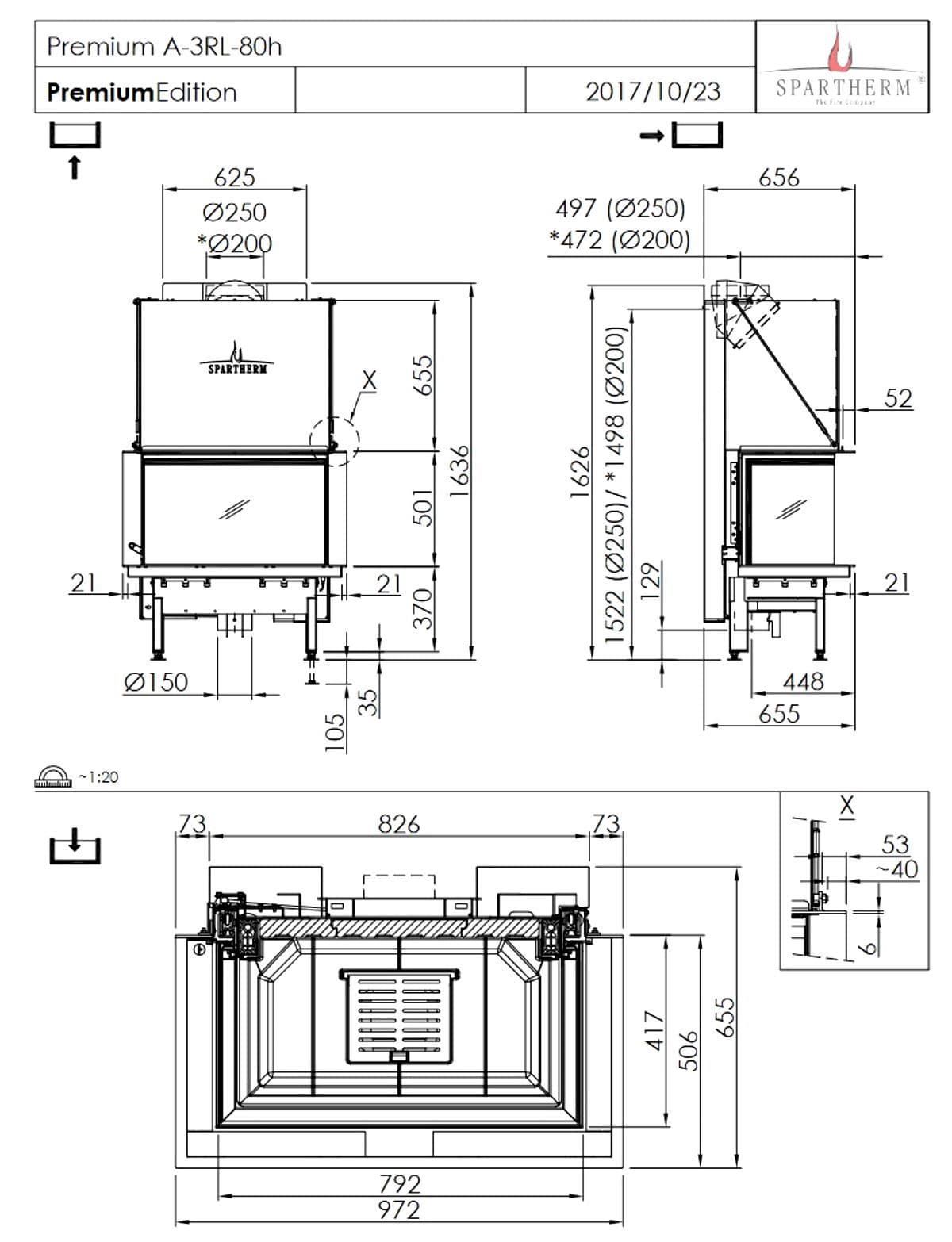 Каминная топка Spartherm Premium A-3RL-80h с трехсторонним стеклом - воплощение настоящего немецкого качества, сочетающая в себе эстетику изысканного дизайна и последние технические разработки в области производства каминного оборудования. По всем параметрам топки Spartherm полностью соответствуют требованиям к продукции премиум-класса и изготавливаются только из высококачественной стали. Камин оснащен бесшумным механизмом подъема дверцы, обеспечивающим полную герметичность топочной камеры, а также системой "чистое стекло" и полностью регулируемой системой вторичного дожига, позволяющей достигать высоких показателей теплоотдачи.