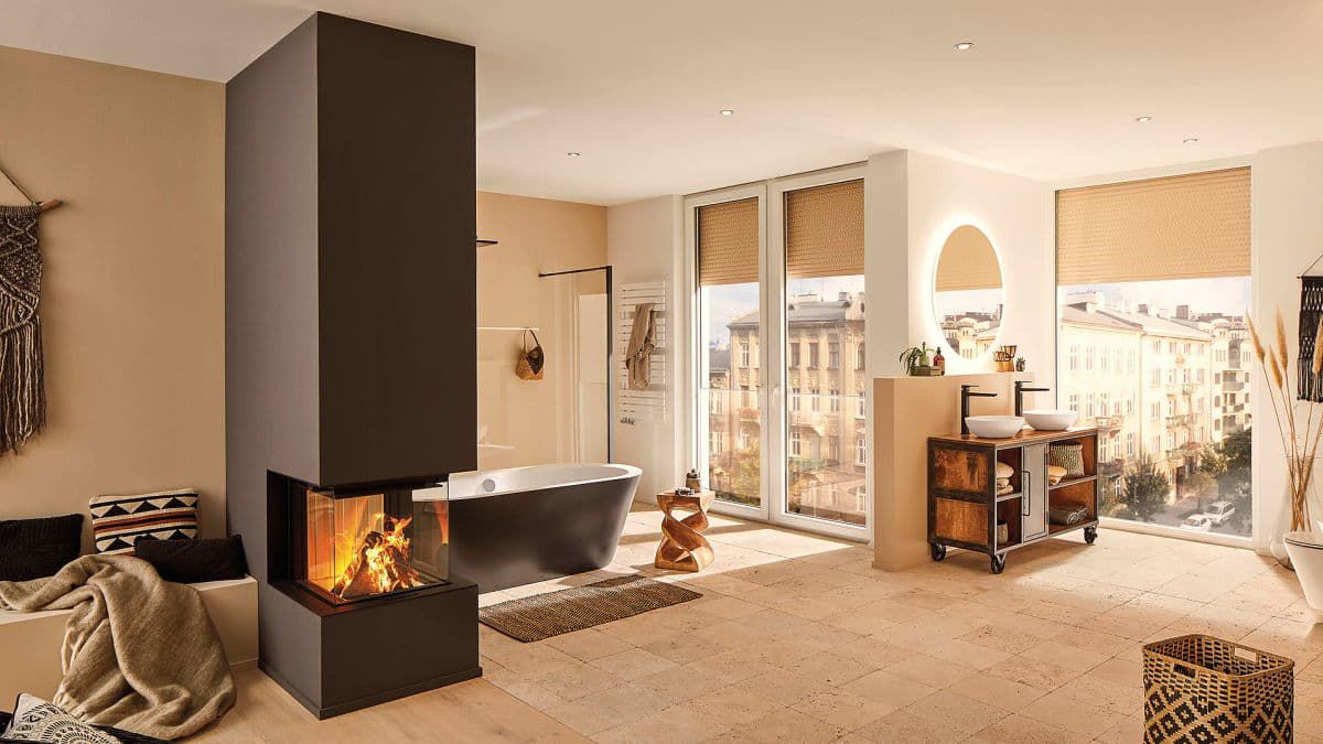 Огонь эксклюзивной каминной топки окружен стеклом только с трех сторон. Это дает огню возможность максимально раскрыть свое очарование. Кроме того, вы получите удовольствие от постановки огня в центре комнаты. Специальная опция выделения: окно S-ESAM, которое можно открыть электрически с помощью смартфона.
