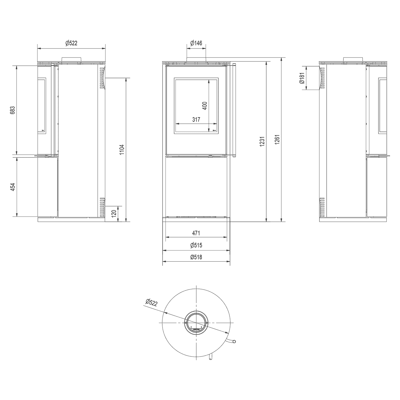 - регулируемые ножки для компенсации неровностей пола и выравнивания печи,