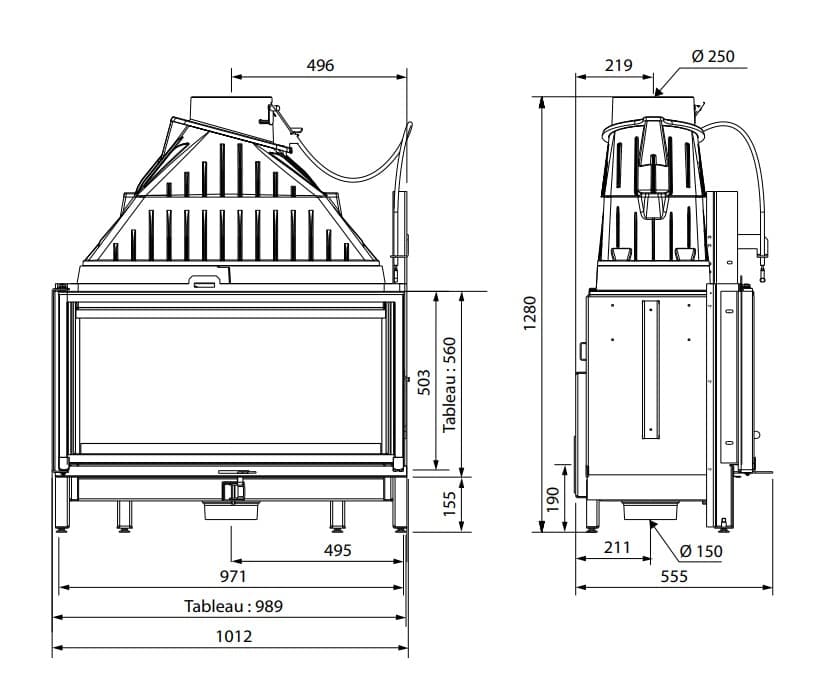 Cheminees Philippe 1001 DF Etanche SR - чертеж: