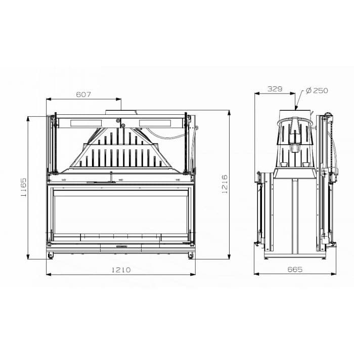Топка Cheminees Philippe 1200 DF PR - дровяная топка с чугунным корпусом и сквозным остеклением. Оснащена подъемным механизмом дверцы.