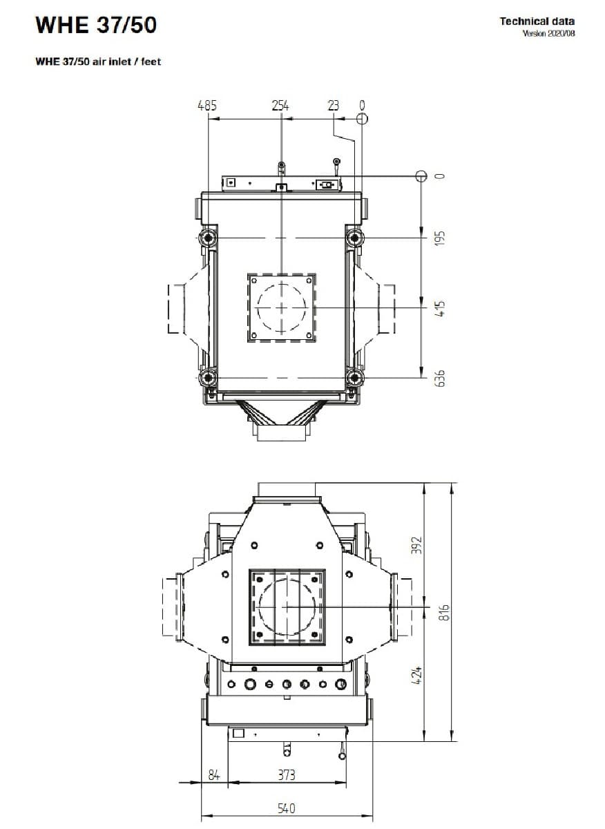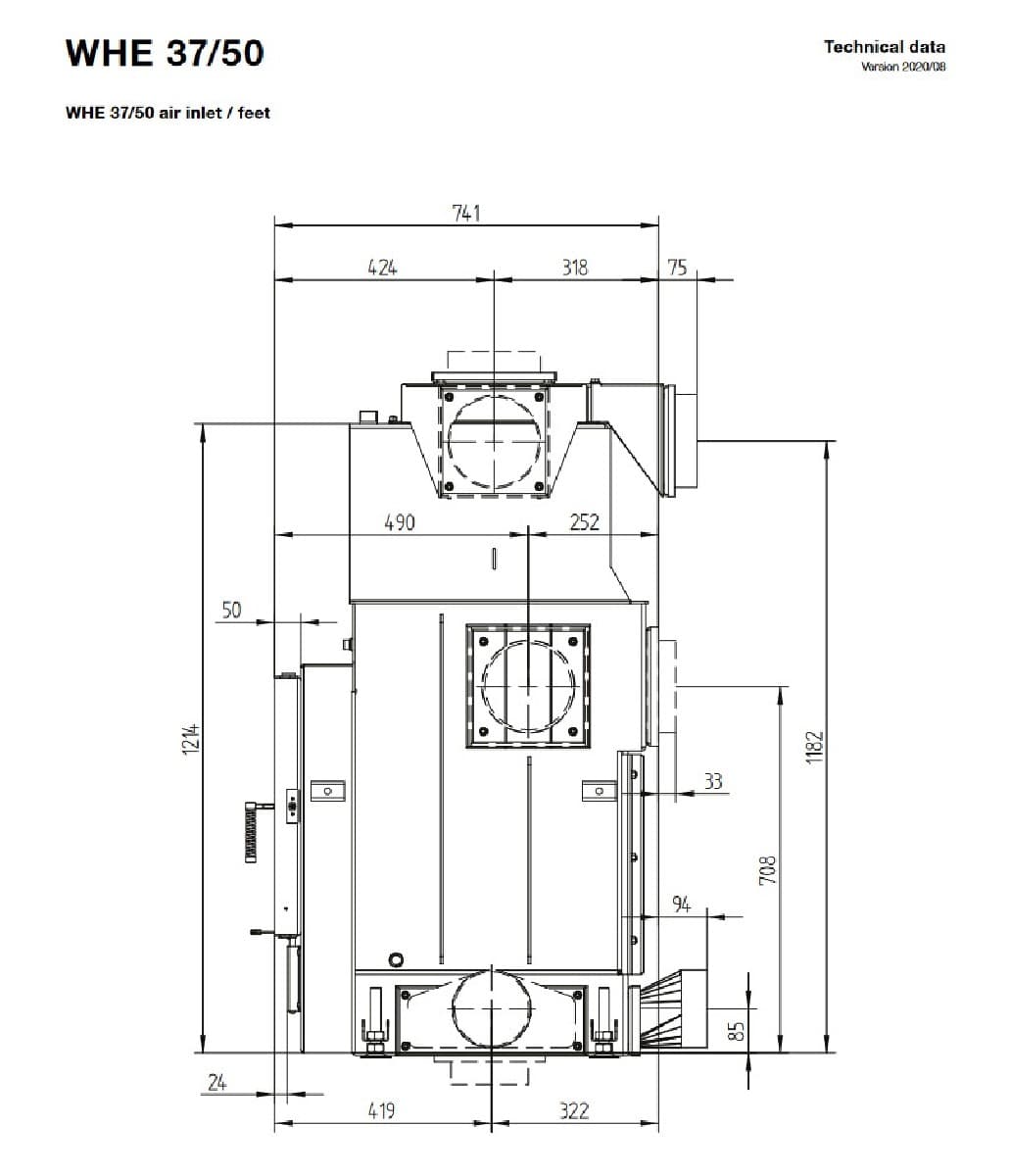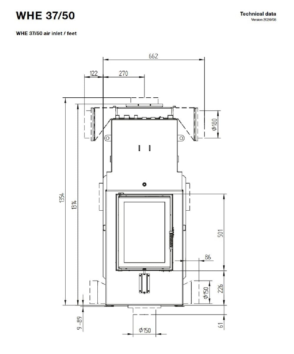 Габаритные размеры топки с водным контуром Hoxter WHE 37/50
