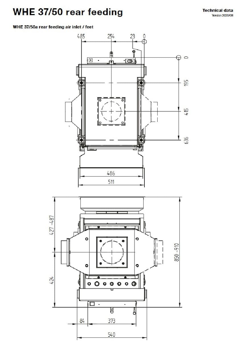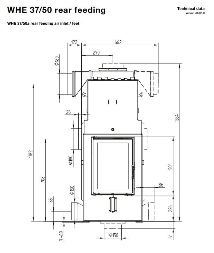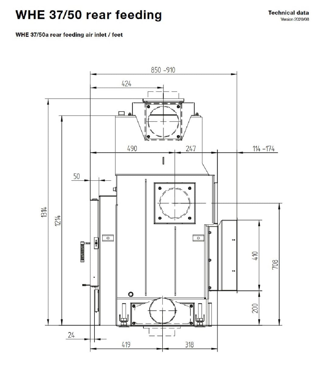 Габаритные размеры топки с водным контуром Hoxter WHE 37/50a