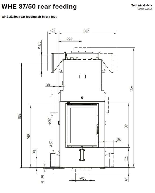 Габаритные размеры топки с водным контуром Hoxter WHE 37/50aWTR