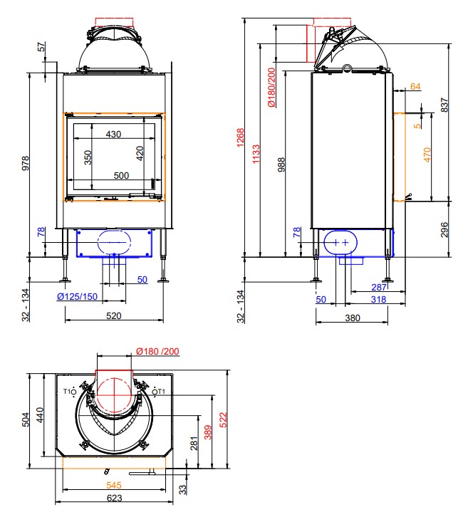 Brunner BKH 5.0 flat 42-50 DT - стальная топка с боковым открыванием дверцы.