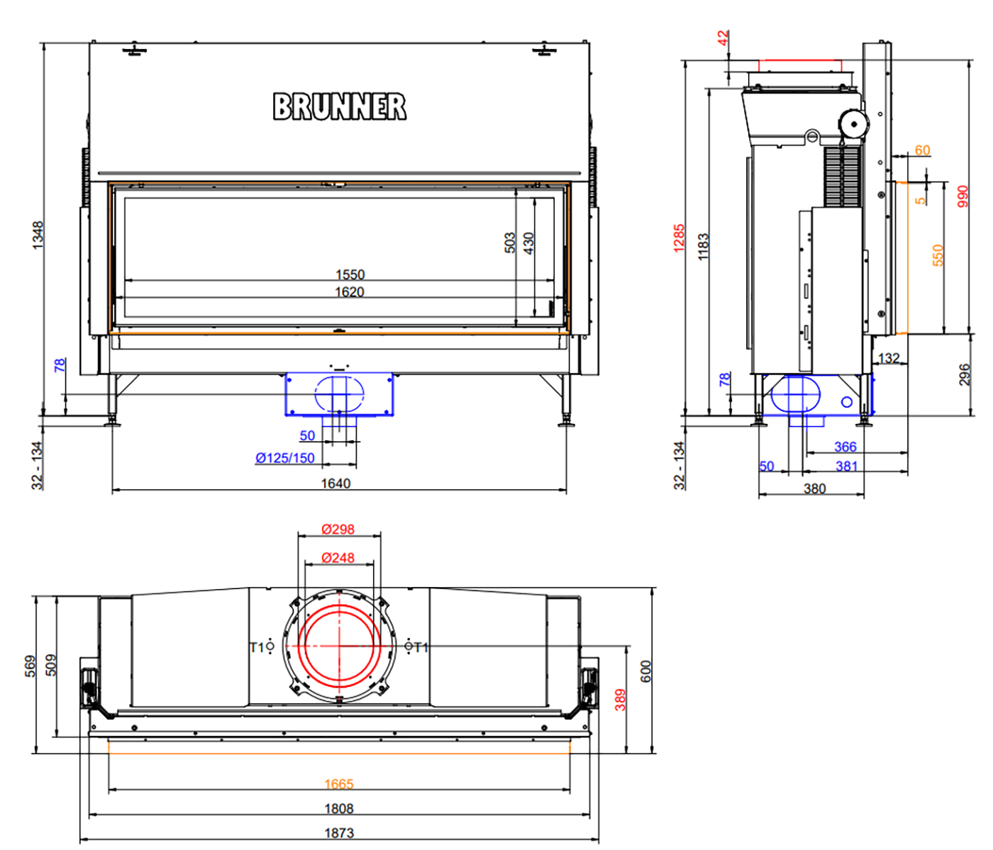 Brunner BKH 5.0 flat 50-162 ST - стальная топка с боковым открыванием дверцы.