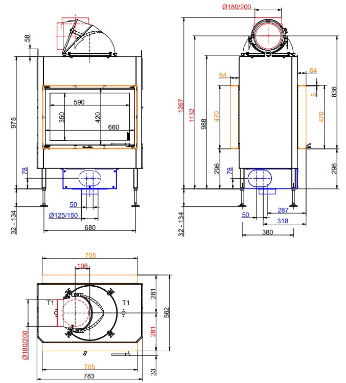 - Способ открытия дверцы топки:боковое открытие с двух сторон