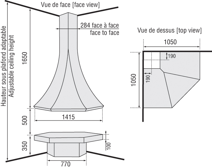 Чертеж углового открытого камина Julietta 985 JC Bordelet: