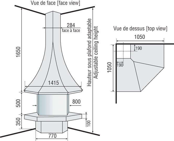 Чертеж углового закрытого камина Julietta 985 JC Bordelet: